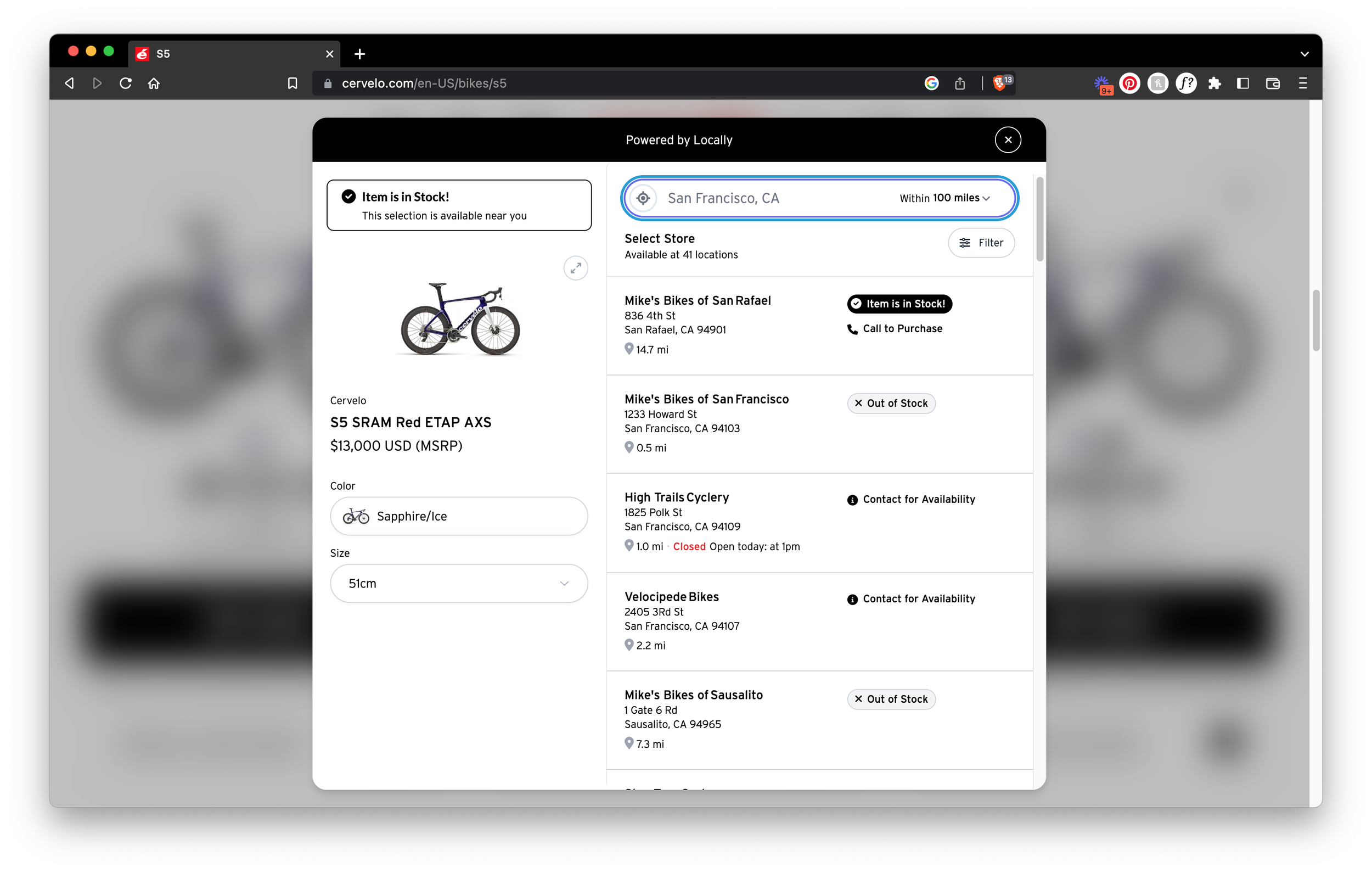 Our product locator is now live on the Clearly Bikes, Kahtoola, Rab, Tough Cutie, Marucci Sports, Victus Sports, Coast Cannabis (Lucida Club), Cervelo, and Earthbath websites. The Product Locator refers tens of thousands of shoppers to products that are in-stock and available for purchase nearby. Because Locally I powered by real-time local inventory, shoppers can see stock as specific as color and size.